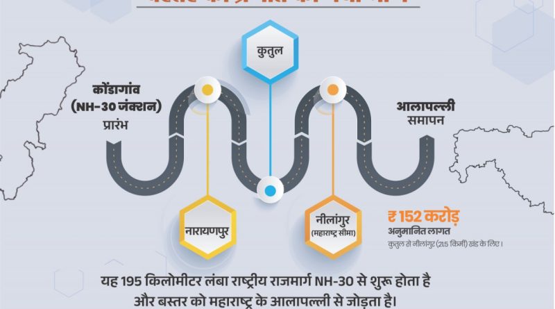 कुतुल से नीलांगुर महाराष्ट्र बॉर्डर तक एनएच-130-डी का होगा निर्माण नक्सल प्रभावित क्षेत्रों में विकास की गति तेज करने के